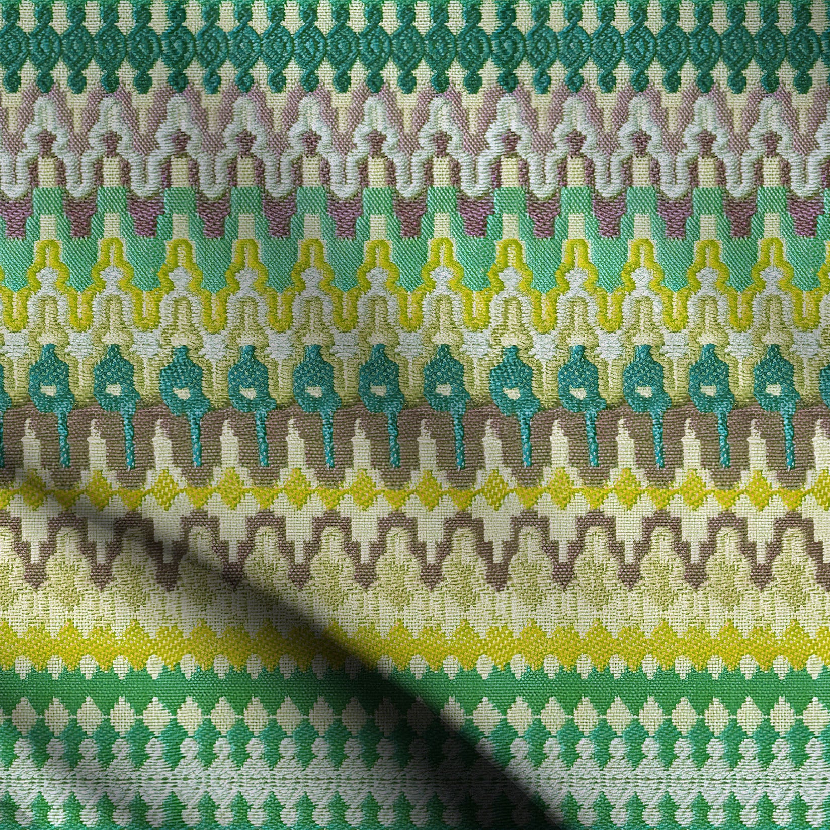 Silk Jacquard Chains - Textured silk fabric with chain-like patterns.